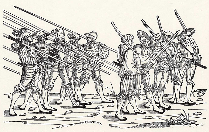 Während der Wirren des Dreißigjährigen Krieges, in denen mehrfach fremde Truppen ins Land einfielen, war Husum durch die Truppen Tillys so stark belegt, dass die Soldaten größtenteils in den Straßen auf Strohlagern schlafen mussten. Schwere Brandschatzungen setzten der Bevölkerung stark zu. Die Stiftungen der gottorfischen Herzoginnen, deren Witwensitz das Husumer Schloss geworden war, konnten die Not nur teilweise lindern. Als die kaiserlichen Truppen schließlich 1629 abzogen, hinterließen sie eine verarmte Stadt mit Schulden in Höhe von 192.000 Reichstalern.