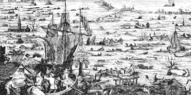Husum wird durch die große Sturmflut (Grote Mandränke), die eine schiffbare Verbindung des Tals der Mühlenau mit dem Meer schuf, zur Küstenstadt und entwickelt sich bald zu einem bedeutenden Umschlaghafen. Husum ist also "ein Kind der Sturmflut" und wird quasi "über Nacht" zur Hafenstadt.